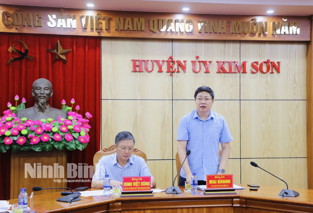 Phát biểu kết luận, đồng chí Đinh Việt Dũng, Ủy viên Ban Thường vụ Tỉnh ủy, Chủ nhiệm Ủy ban Kiểm tra Tỉnh ủy, Trưởng Đoàn đại biểu Quốc hội tỉnh ghi nhận, đánh giá cao những nỗ lực và tinh thần chủ động, trách nhiệm của huyện Kim Sơn trong công tác chuẩn bị cho việc sáp nhập đơn vị hành chính cấp xã.