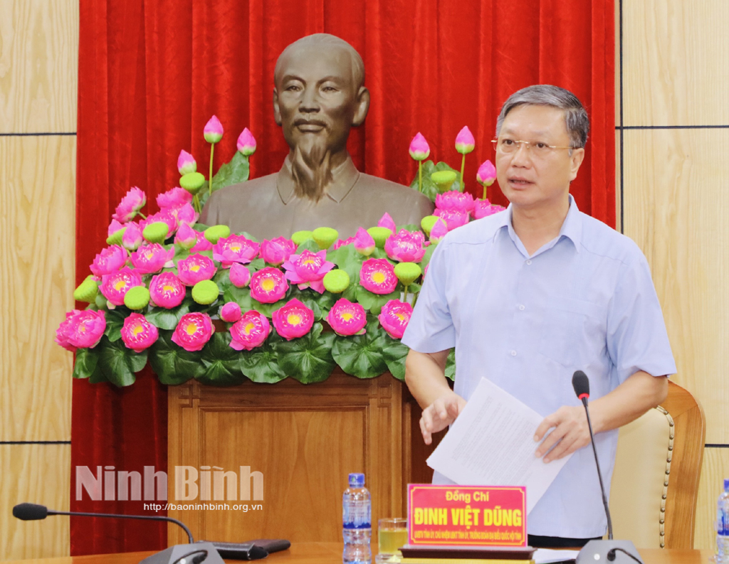 Đồng chí Đinh Việt Dũng, Ủy viên Ban Thường vụ Tỉnh ủy, Chủ nhiệm Ủy ban Kiểm tra Tỉnh ủy, Trưởng Đoàn đại biểu Quốc hội tỉnh phát biểu kết luận buổi làm việc. Ảnh: Đức Lam