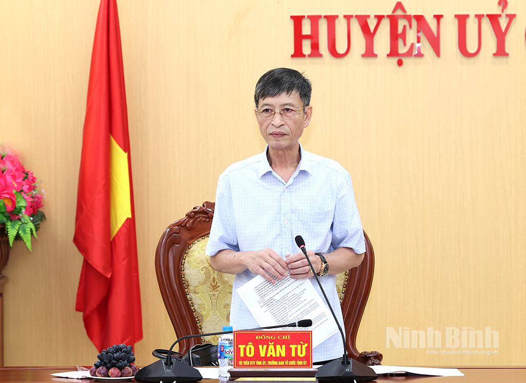 Phát biểu kết luận buổi làm việc, đồng chí Tô Văn Từ, Ủy viên Ban Thường vụ Tỉnh ủy, Trưởng Ban Tổ chức Tỉnh uỷ đánh giá cao sự cố gắng, chủ động của huyện Gia Viễn trong quá trình triển khai thực hiện nhiệm vụ sắp xếp, chuẩn bị các điều kiện để vận hành đơn vị hành chính cấp xã mới theo đúng tiến độ, lộ trình.